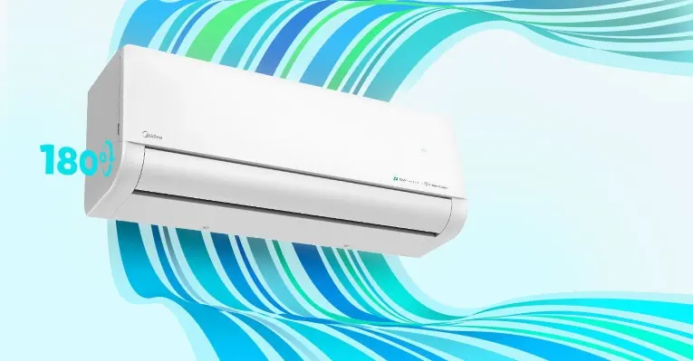 Der um 180° drehbarer Luftverteiler sorgt für den Extra-Komfort und ermöglicht schnelles Kühlen und Heizen – sanft und präsise zugleich. Je nach Bedarf steht ein 0°-Luftstrom entlang der Decke oder ein 180°-Wasserfall-Luftstrom zur Verfügung.