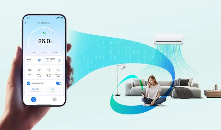 Solstice ist mit dem AI ECOMASTER von Midea ausgestattet, der einen leistungsstarken Al-Algorithmus verwendet und mit Milliarden von Datenpunkten trainiert wurde, um das ultimative Energiemanagement in Klimaanlagen auch ohne Internetverbindung zu ermöglichen. Schnellere, präzisere Steuerung und Energieeinsparungen gleichermaßen wie Komfort dank Berücksichtigung komplexer Umweltfaktoren und dynamischer Vorhersage der Heizlast.