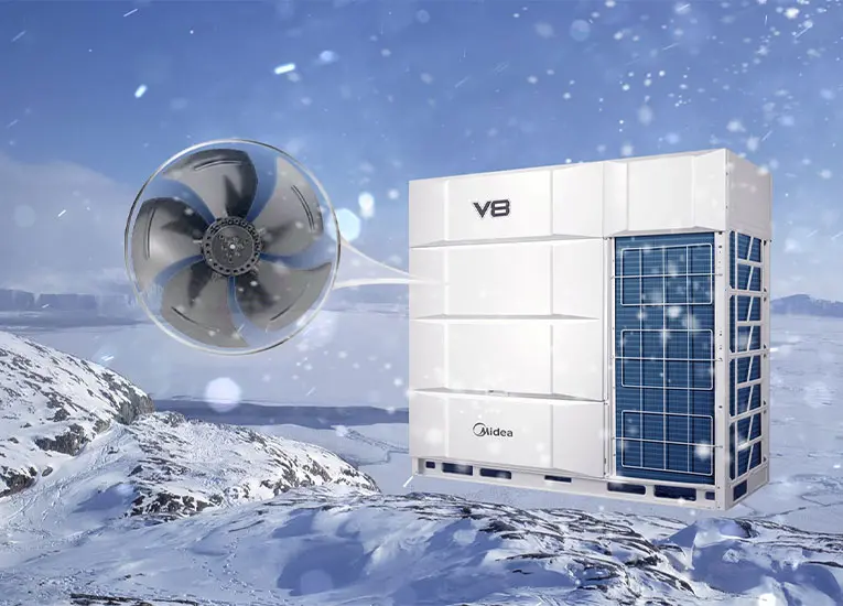 Die V8 Pro-Serie nutzt moderne DC-Inverter-Technologie, um den Kompressor und Lüfter stufenlos anzupassen, was einen effizienten und leisen Betrieb gewährleistet. Diese Technologie sorgt dafür, dass das System stets optimal arbeitet.