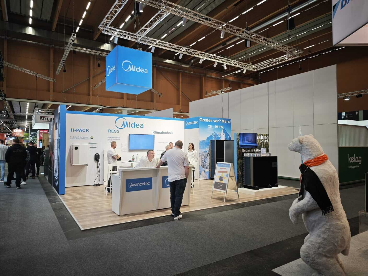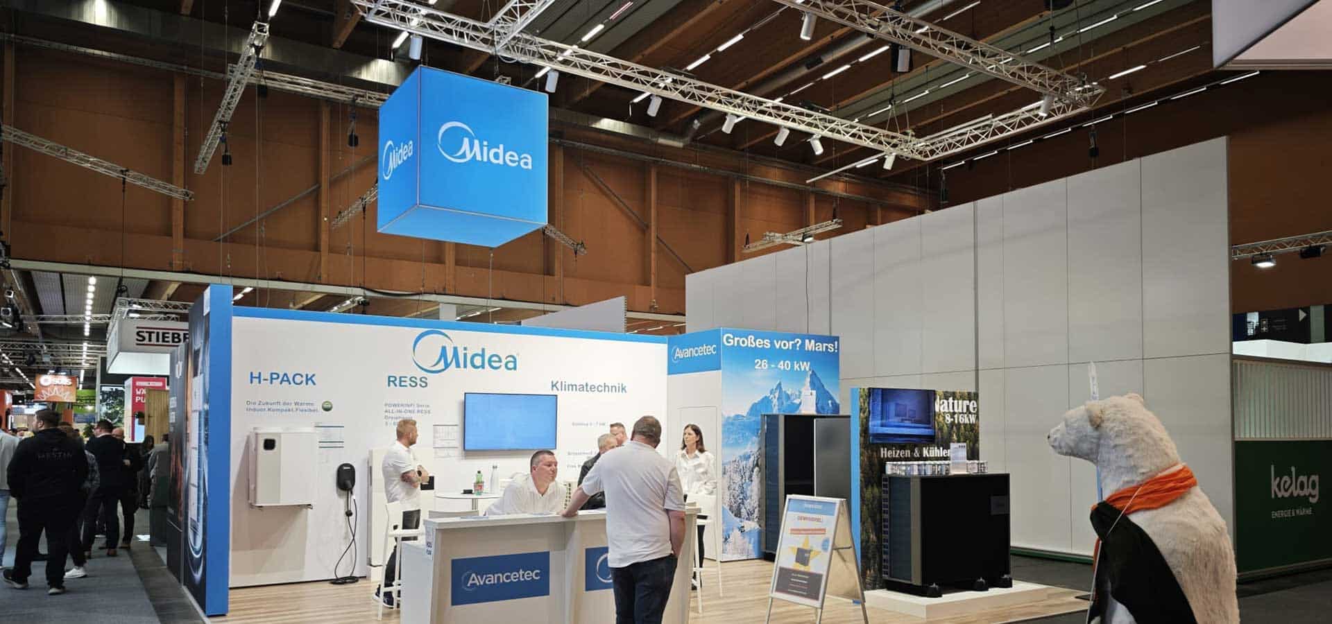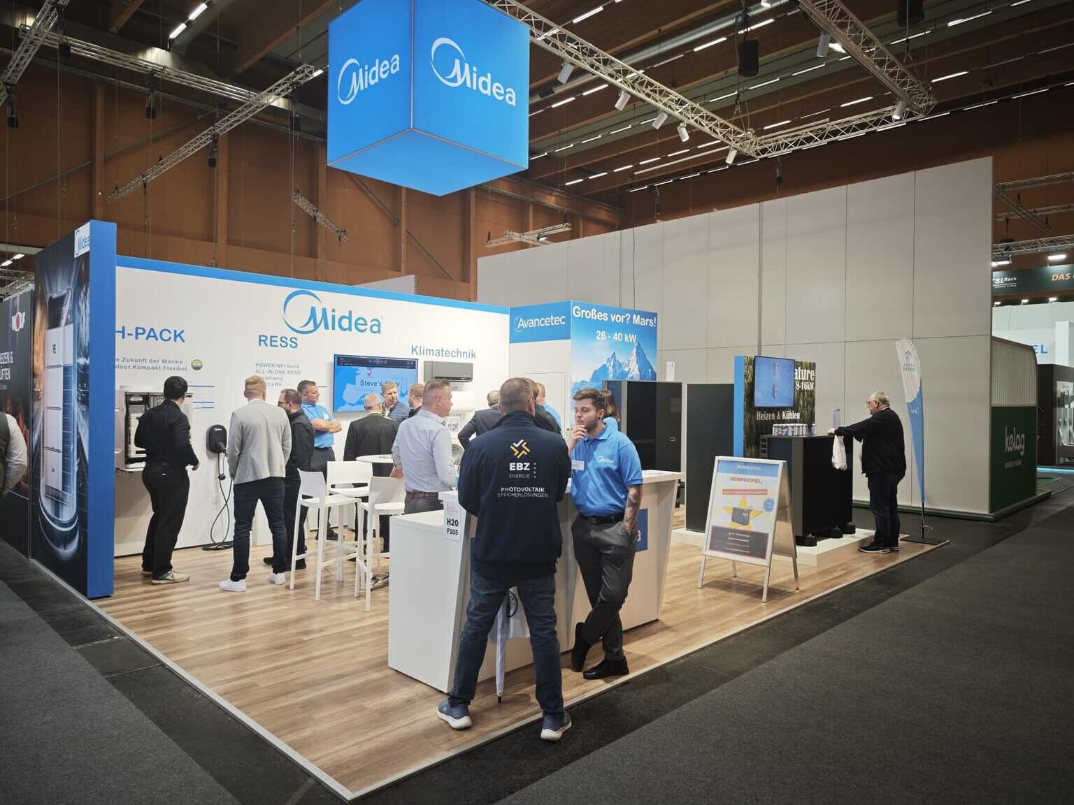 Im Mittelpunkt unseres Messeauftritts standen die aktuellen Produktlinien aus dem Hause Midea: Luft-Wasser-Wärmepumpen, Batteriespeicherlösungen sowie unser selbst entwickeltes Innengerät – allesamt Produkte, die wir nicht nur vertreiben, sondern aus eigenen Testinstallationen in- und auswendig kennen.
